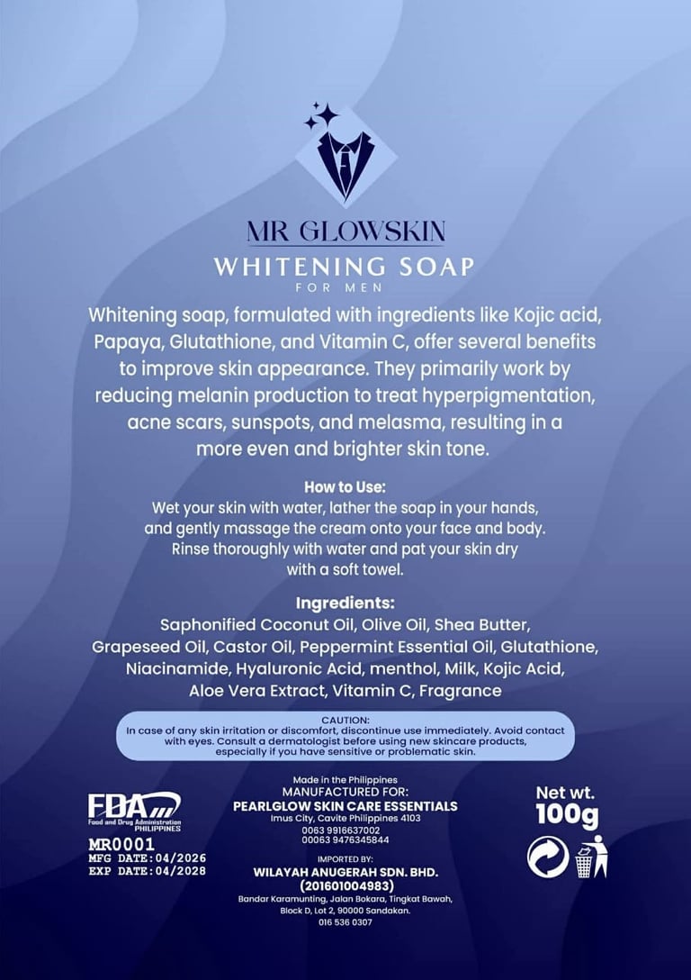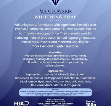 Whitening soap, formulated with ingredients like Kojic acid, Papaya, Glutathione, and Vitaminc C,